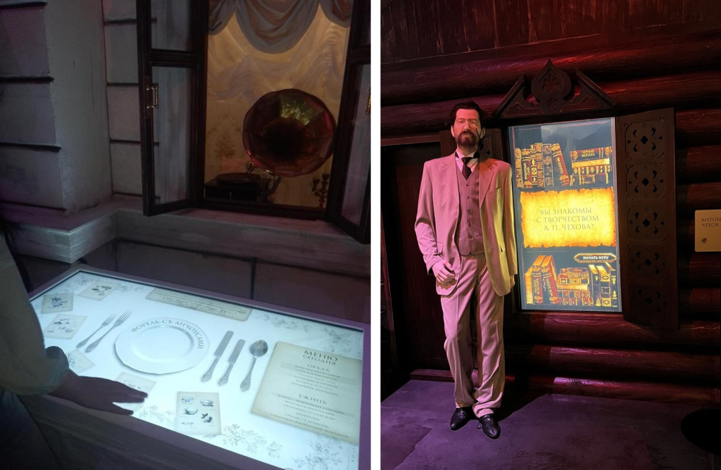 Зал «Набережная Ялты» включает панорамный кинотеатр, и реконструированное историческое кафе. Здесь зрители могут сеть за столики и посмотреть видеоматериалы, полюбоваться морскими пейзажами, а напротив увидеть Шаляпина, Чехова. Рядом с Чеховым виртуальная интерактивная книжная полка на основе встраиваемого 55” дисплея LUMIEN. Такой же дисплей встроенный в столешницу, знакомит с меню ялтинского кафе.