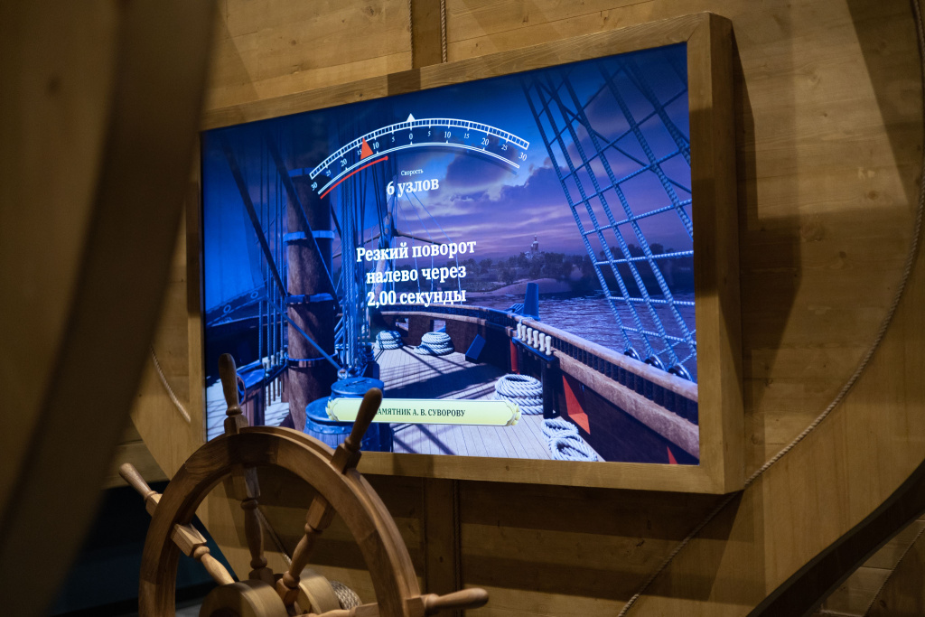 Популярностью у посетителей пользуются инсталляции, в которых они могут встать за настоящий штурвал и управлять виртуальным кораблем, ориентируясь по видам и подсказкам на панели LUMIEN Basic.