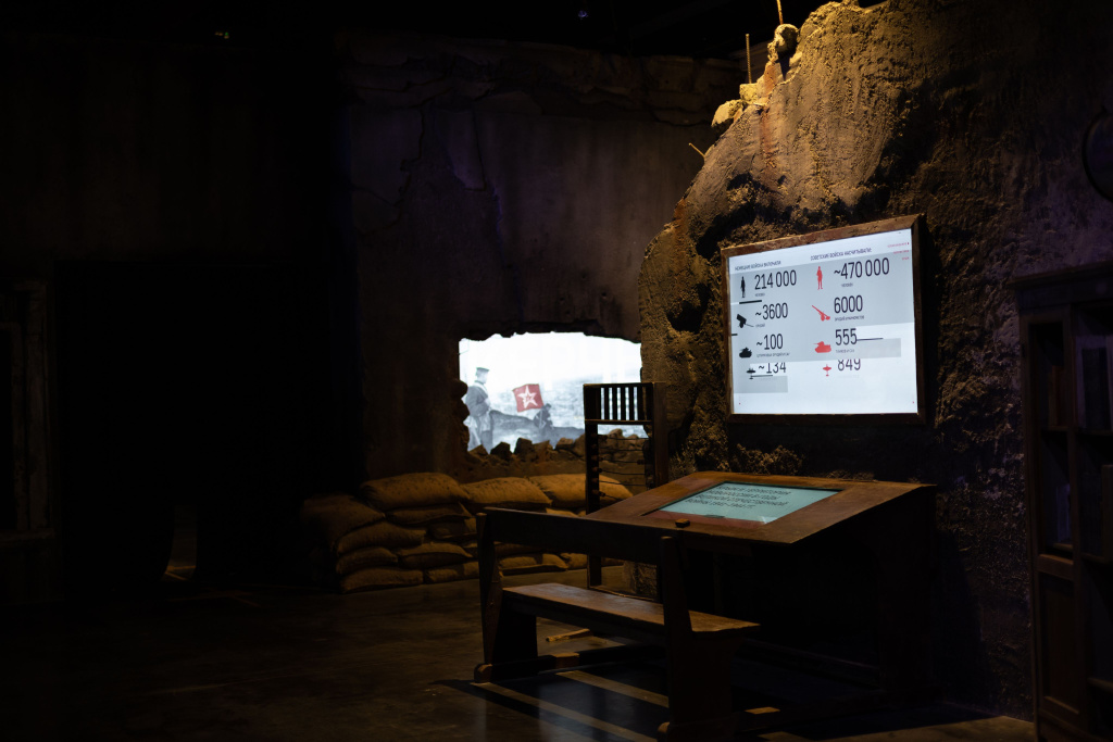 В зале, посвященном событиям времен Великой Отечественной войны информационный модуль создан в стилистике школы тех лет, где в парту встроена безрамомочная панель серии 01PC, а в роли доски дисплей серии Basic.